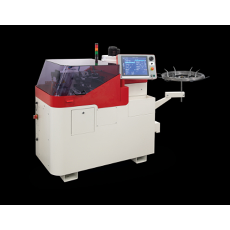 Unlike most machines, the material in an Escomatic doesn't spin: the tools do. Material gets fed into an Escomatic (which can be CNC or cam-driven) in a coil rather than bar form and the tools spin at high RPM around the material. This allows for high precision and machining speed without a cutoff burr!